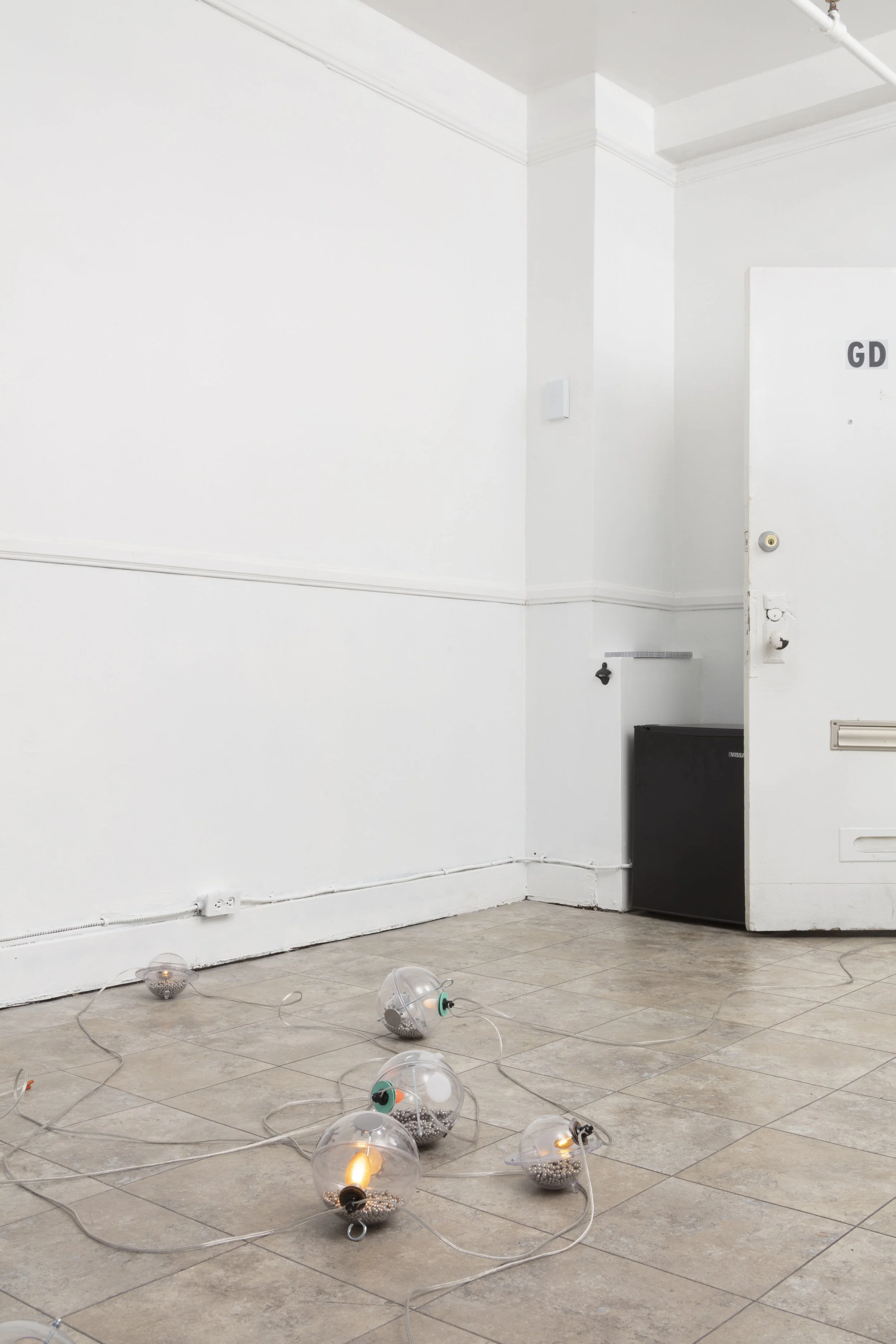 Ultimately though, this is a love letter to the sphere. All future thinking requires a grounded material reality. How things hang together is a form of philosophy. To produce objects is to channel how things are made, one’s relation to it, and how it is placed. We make up scales and hold them next to things. Measured here: electrical outlet, yard stick, A7, text and its relativity, one subject over or under another, and one object over or under another.
